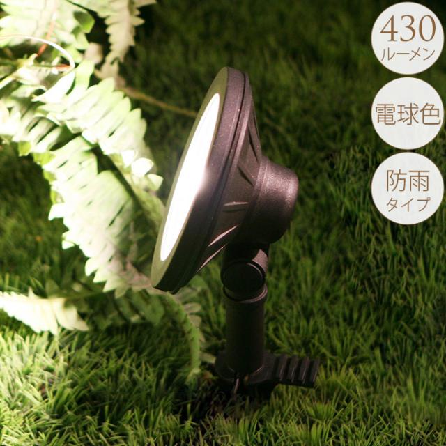 消費電力:7.4W 明るさ:430ルーメン 配光角度:105度 照射距離(目安):3m LED交換不可 スパイク付属 防雨型 別売りマウント使用可