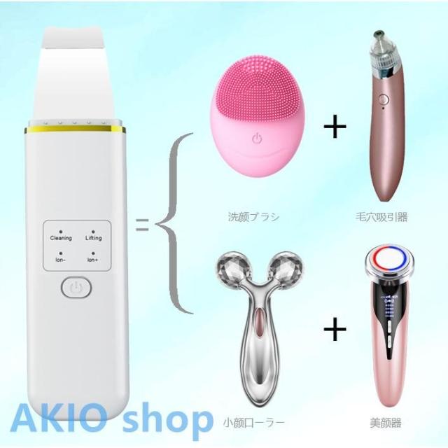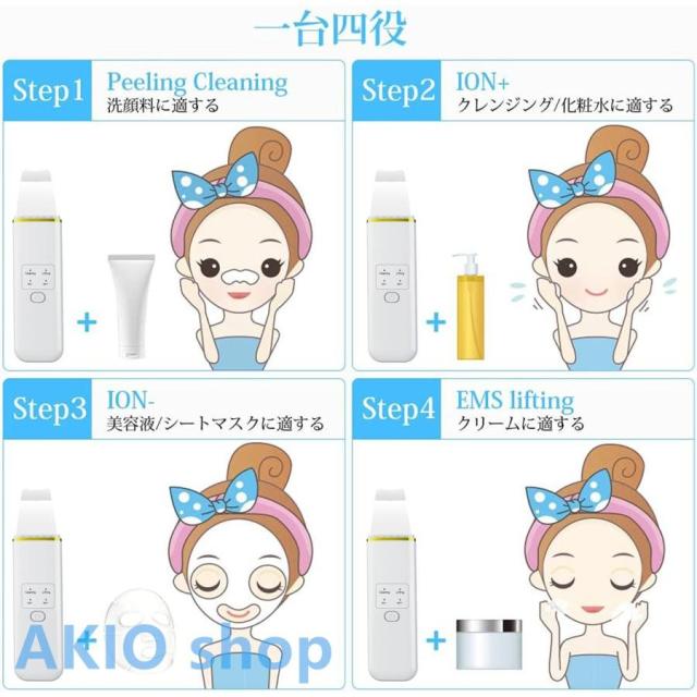 1台4役 超音波スキンクリーナー PSE認証済み 超音波美顔器 毛穴清潔 汚れ除去 超音波ピーリング 超音波美顔器 美顔クリーナー ウォーターピーラー 浸透