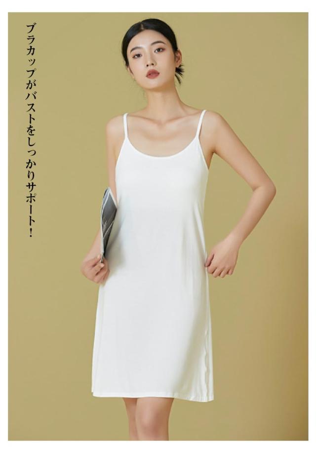 カップ付き ブラトップ 胸パッド レディース キャミソール ワンピース インナードレス ブラカップ付き ペチコート ワンピース キャミワンピ ロング スリップ 透け防止 ブラック ホワイト ベージュ 送料無料 下着 ルームウエア ナイトウエア 肌着
