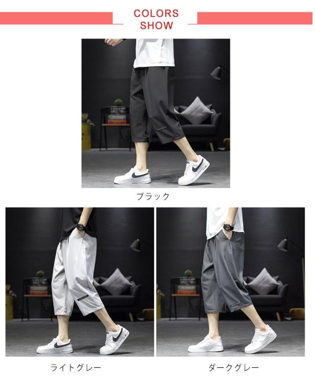 ハーフパンツ メンズ 7分丈 ひざ下 パンツ 七分丈 クロップドパンツ カーゴパンツ 夏用 涼感 黒 灰 ルームウェア アウトドア ゆったり 夏 大きいサイズ おしゃれ シンプル 膝下丈 ひざ下丈 ボトムス カジュアル イージーパンツ 黒 ショートパンツ 夏服