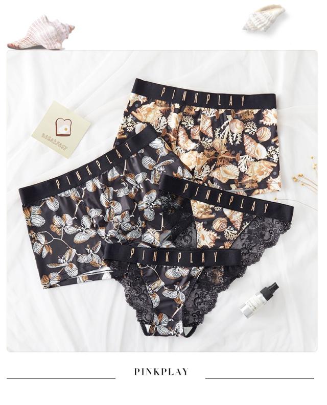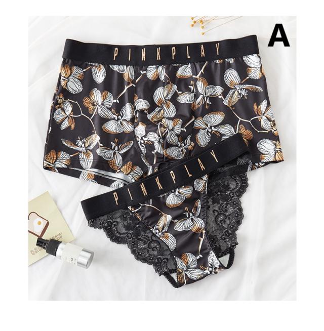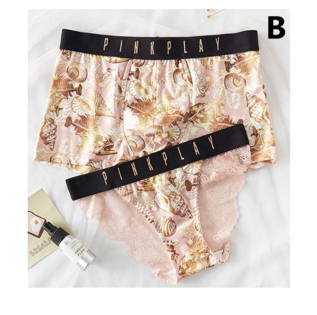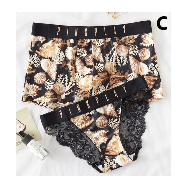 ペアパンツ 下着 カップル お揃い 男女 2点セット レギュラーショーツ バレンタインデープレゼント セクシー レース 3色 送料無料