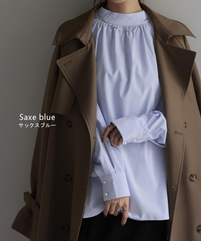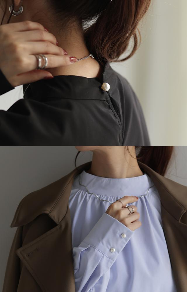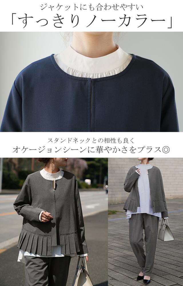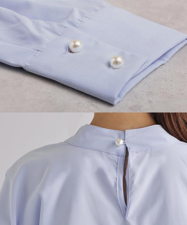 パールの存在感で上品かつ女性らしいプルオーバーのブラウスです。
