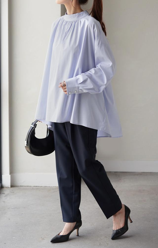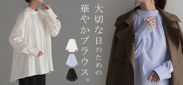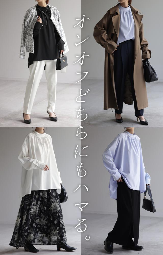 フェミニンな装いはもちろんカジュアルに合わせてもブラウスのデザインが引き立ちます。