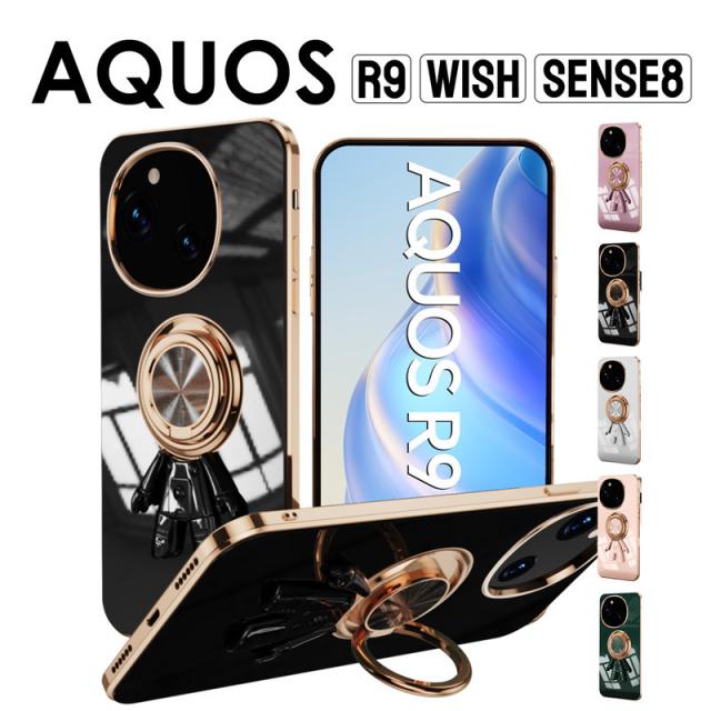 AQUOS アクオス ケース wish4 sense8 R9 ケースカバー リング付き TPU ソフトケース かわいい おしゃれ AQUOS wish4 ケース リング付き 宇宙飛行士AQUOS sense9ケース リングホルダーAQUOS R9ケース 背面保護 AQUOS wish4カバー sense10 カバー リング付き AQUOS ケース