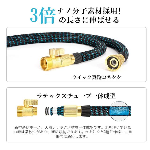 ホース 散水ホース 伸びるホース 洗車ホース 水道ホース 15M 3倍に伸びる 改良版 伸縮 ホース 洗車 ガーデニング コンパク