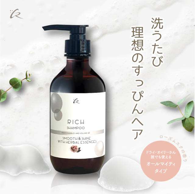 【ふわっと しんなり 艶こし リッチ シャンプー】500g/美容室 サロン 専売/すっぴん モテ髪/ローズ ムスクの香り/ふんわり さらさら ノンシリコーン ダメージケア/ヒアルロン酸 植物エキス 加水分解ケラチン 配合/自社工場直販