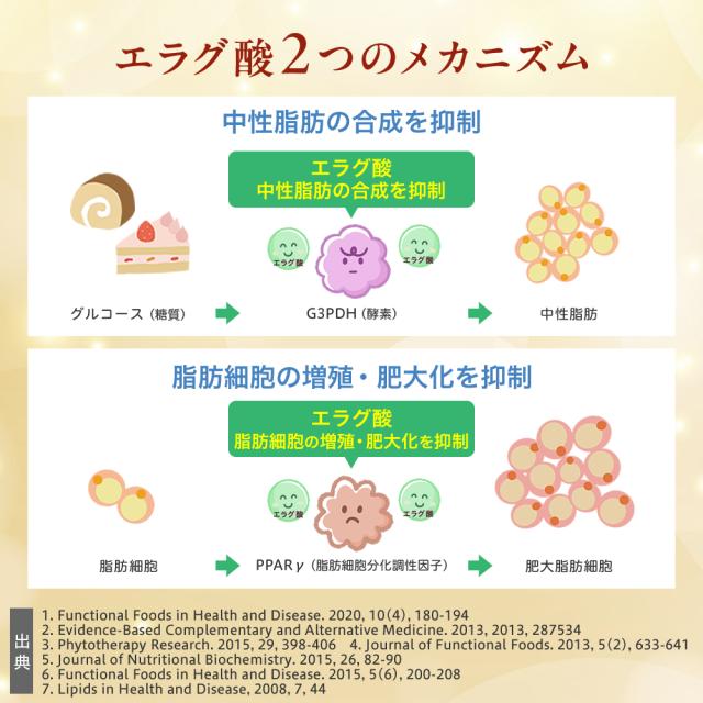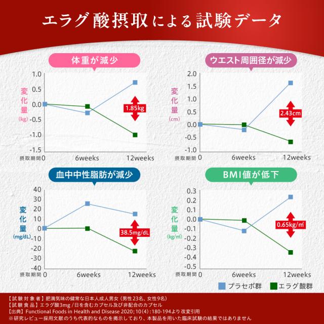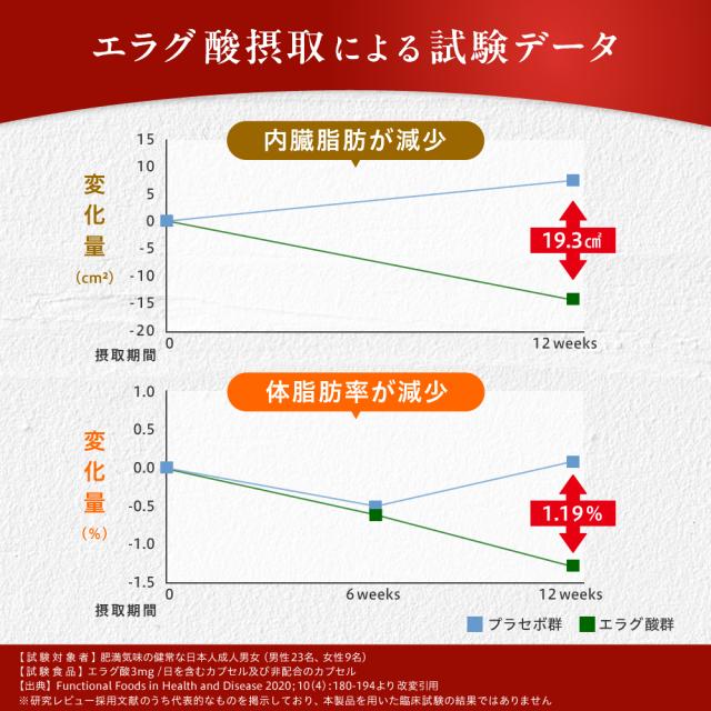 ●【届出表示】本品にはエラグ酸が含まれています。エラグ酸は肥満気味の方の体重、体脂肪、血中中性脂肪、内臓脂肪、ウエスト周囲径の減少をサポートし、高めのBMI値の改善に役立つことが報告されています。【届出番号】J5
