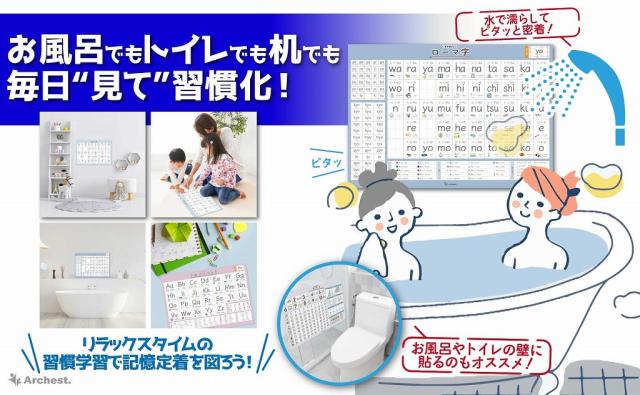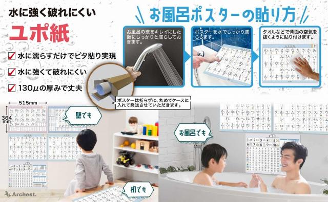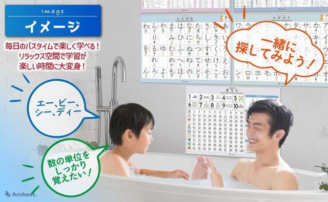 お風呂のリラックスタイムに楽しいポスターを見ることで学習が楽しくなります。学習モチベーションの向上も期待できます。
