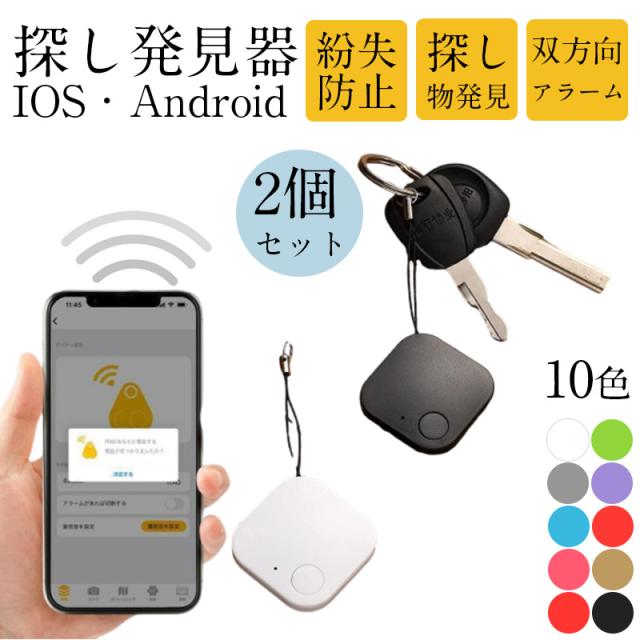 2個セット キーファインダー 探し物発見器 鍵 紛失防止 双方向アラーム スマートタグ スマートトラッカー 薄型 GPS スマホ Bluetooth