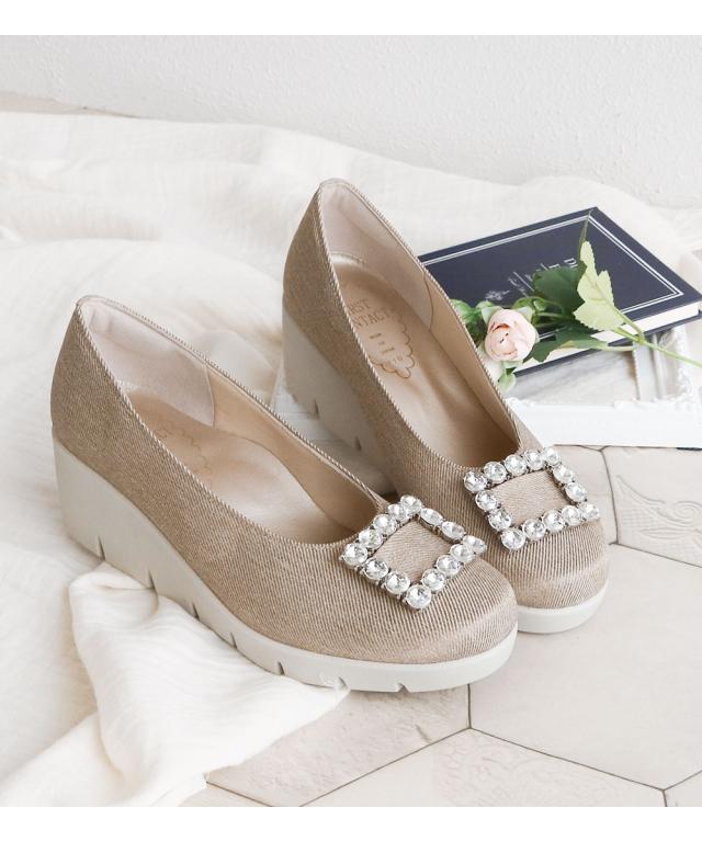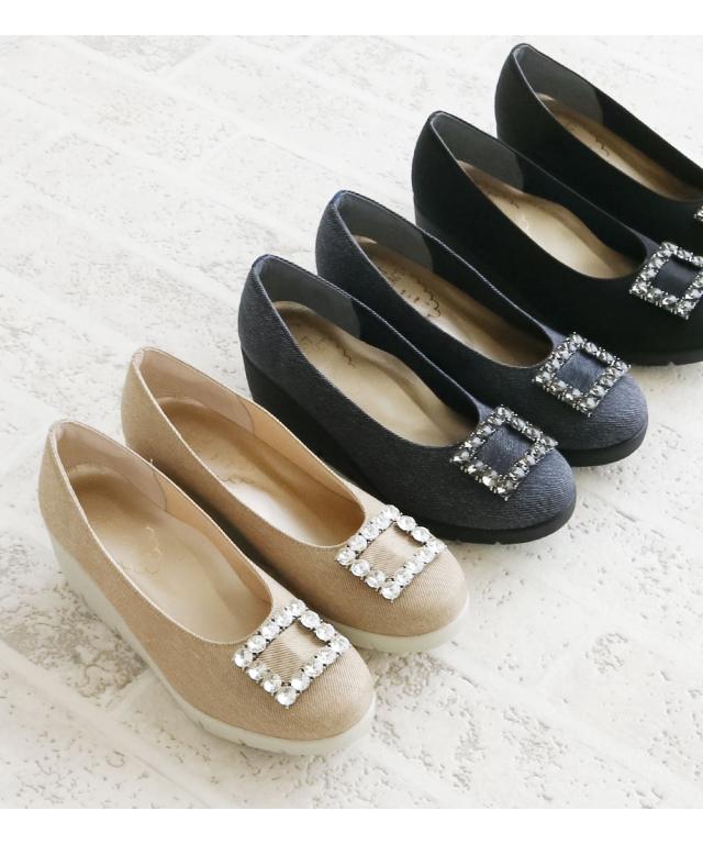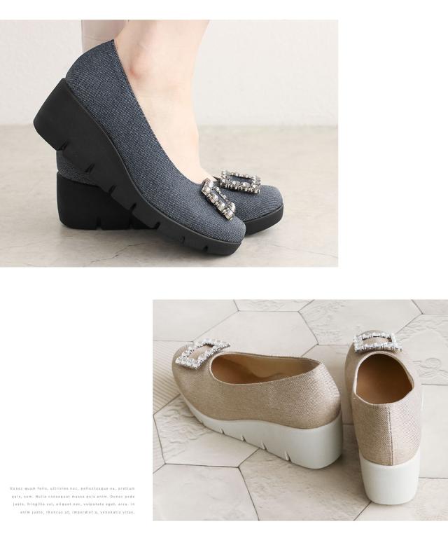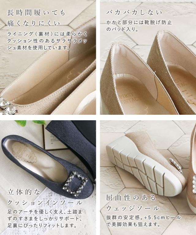 ファーストコンタクト パンプス 靴 レディース 厚底 抗菌 消臭 ウェッジソール 歩きやすい 痛くない コンフォートシューズ 小さいサイズ 大きいサイズ ヒール ウエッジソール 冠婚葬祭 オフィス ビジュー 日本製 FIRST CONTACT 黒 ブラック ベージュ ネイビー 39639