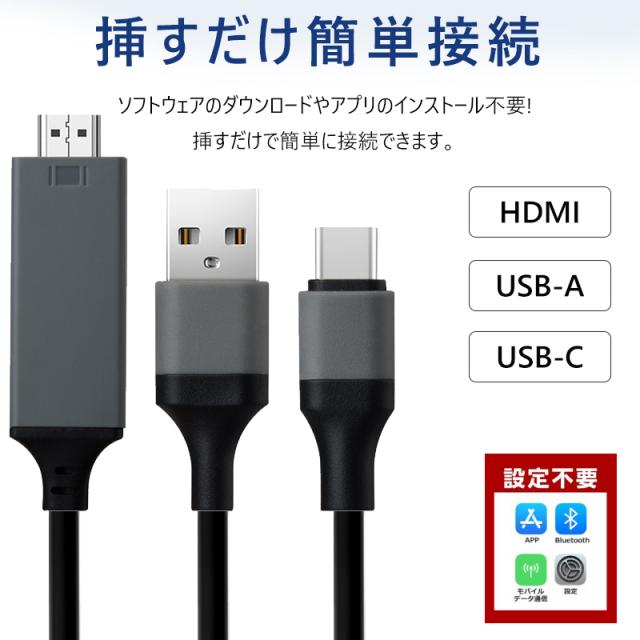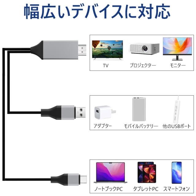 【充電しながら投影可能】USB Type-C to HDMI 変換ケーブル 2m hdmi タイプc 変換ケーブル 4K USB-C 変換アダプター Mac Windows スマホ アンドロイド Ipad Iphone 15 全シリーズ対応 急速転送 簡単接続