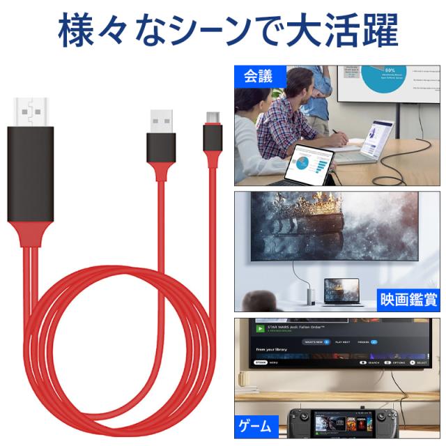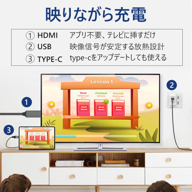 - 充電をしながらスマホの映像をテレビで映し出せてとても便利です。家族で楽しめます。