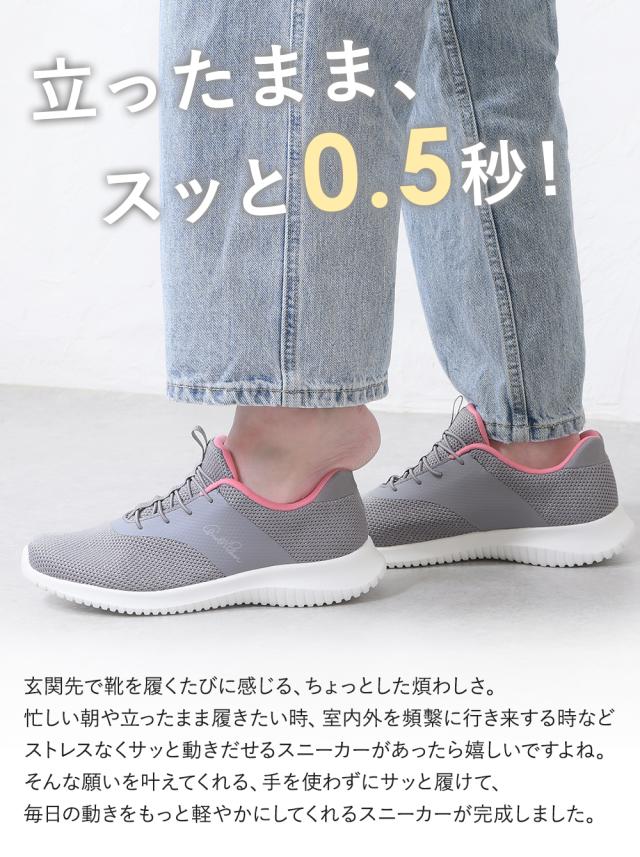 両手を使わず立ったままでもサッと脱ぎ履きできるハンズフリー仕様のスリッポンスニーカー。