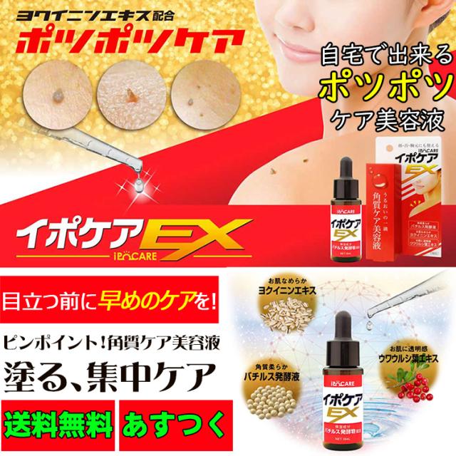 イボの悩み ケア 専用 美容液【イポケアEX】お肌 ポツポツ いぼ取り いぼケア 除去 角質ケア バチルス発酵液18ml 集中ケア 日本製 角質粒 顔首肩胸 日本製 角質 顔 首 肩 胸 イボケア おすすめ 人気 ランキング 効果 強力 最強 ヨクイニンエキス ウワウルシ葉エキス