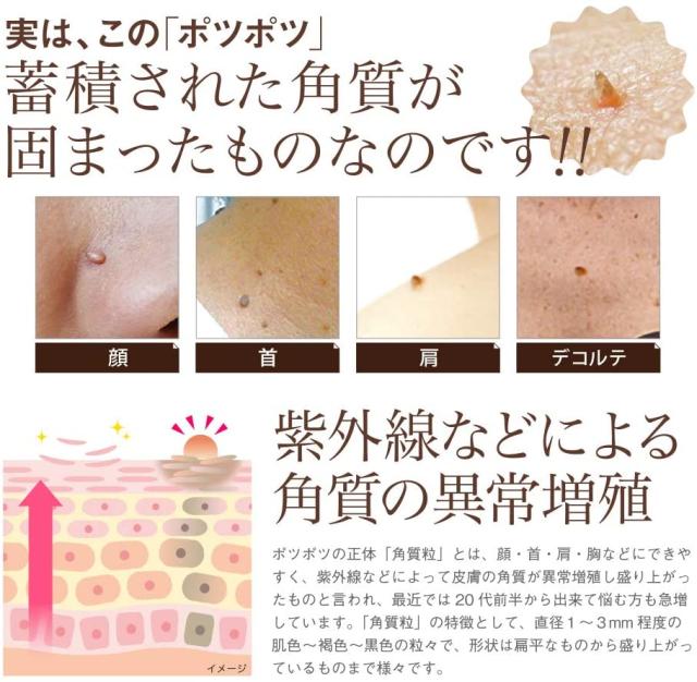- 以前使った事が有り、首周りが綺麗に取れたと思いやめてしまったら、 又ポツポツが…今は顔にも2~3コ出はしめて購入しました。続けてないとダメですね。