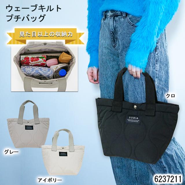 ウェーブキルト ヘチマ柄 ミニ トート バッグ サブバッグ 主婦 ミセス 買い物 手提げ 通学 通勤 サブバッグ レディース 小さめ ミニ ポケット ドリンクホルダー 無地 整理 背面ポケット 軽い ランチ 弁当 B5 シンプル 可愛い おしゃれ 秋 冬 6237211
