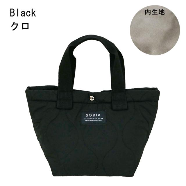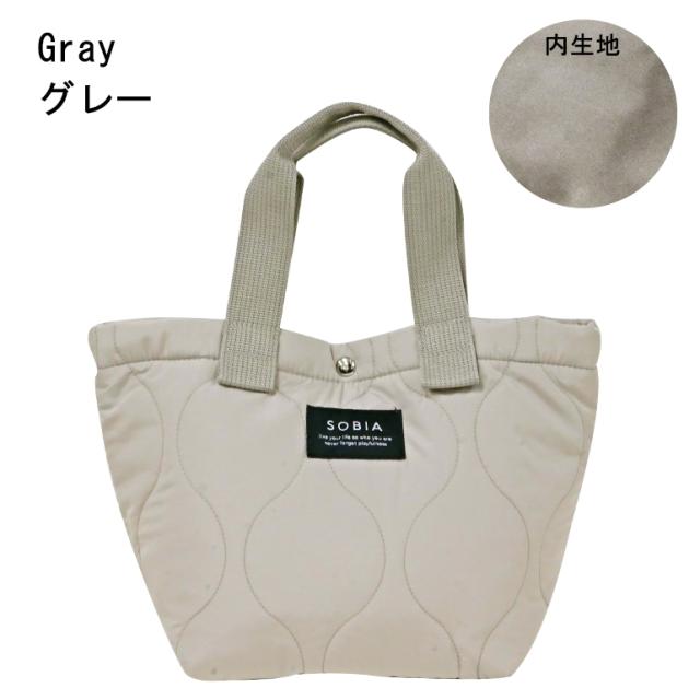 ■ ウェーブキルトにロゴタグがワンポイントのミニトートバッグです。