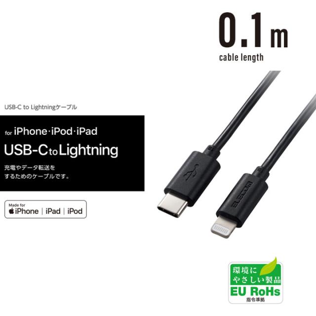 USB C-Lightningケーブル スタンダード 0.1m iPhone iPad iPod ブラック ホワイト 高速充電 データ転送 メール便送料無料