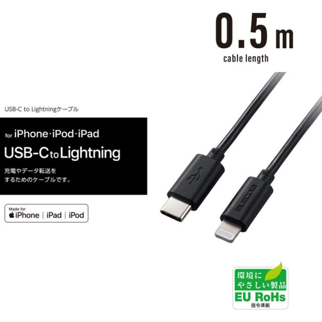 USB C-Lightningケーブル スタンダード 0.5m iPhone iPad iPod ブラック ホワイト 高速充電 データ転送 メール便送料無料