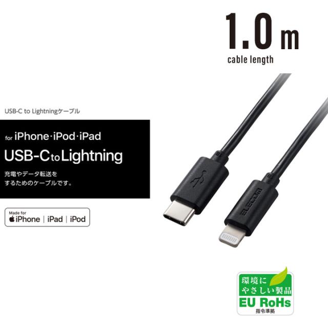 USB C-Lightningケーブル スタンダード 1.0m iPhone iPad iPod ブラック ホワイト 高速充電 データ転送 メール便送料無料