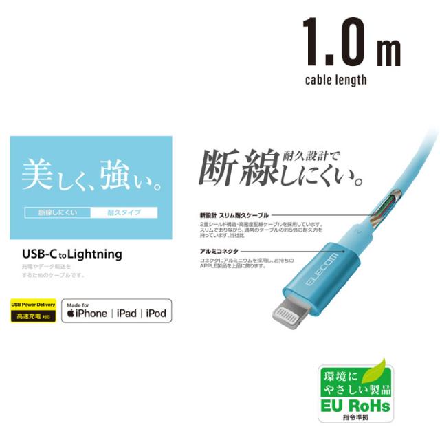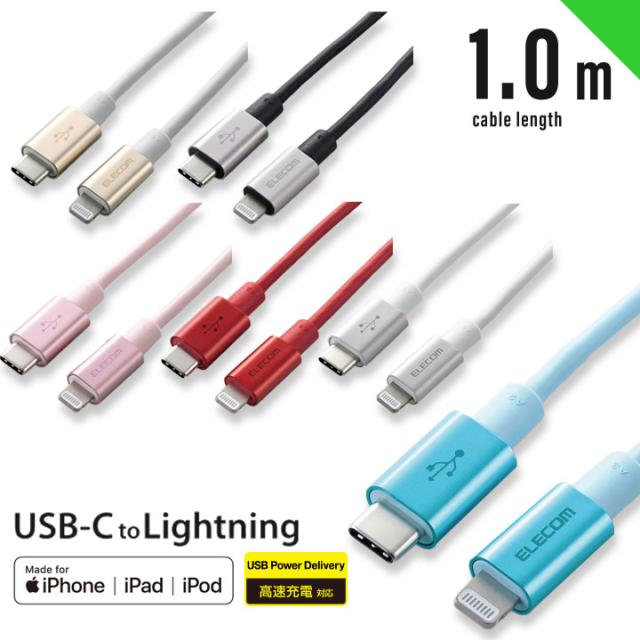 USB C-Lightningケーブル 準高耐久 1.0m iPhone iPad iPod 充電 データ転送 ブルー ゴールド グレー ピンク レッド シルバー メール便送料無料