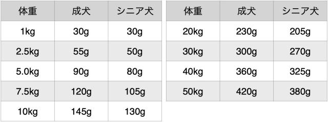 ・表を目安に体重や便の状態、毛ヅヤなどを見ながら適宜調節してください。
