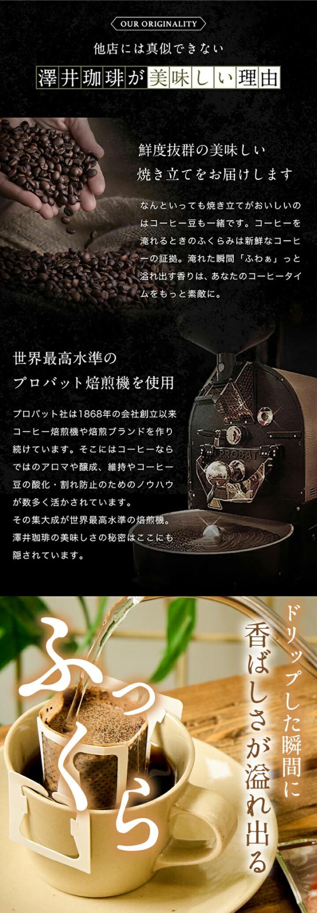 | こんな方にオススメです | お手頃価格で楽しみたい方: コスパが良いので、毎日のコーヒータイムに最適です。 新鮮なコーヒーが好きな方: 澤井珈琲は焼きたてコーヒー専門店だから、いつでも新鮮な味を楽しめます。 |