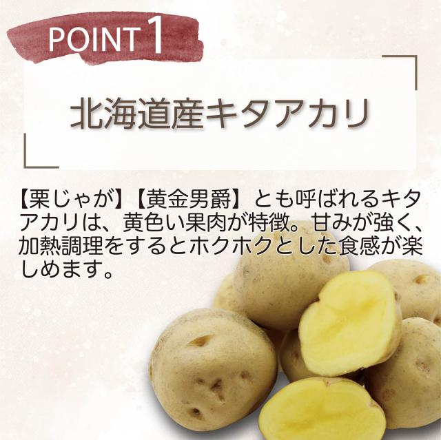 “熱々なじゃがバターのほっくほく感”を表したデザインに。◆ほくほくとした食感で甘みのある北海道産「キタアカリ」を使用。