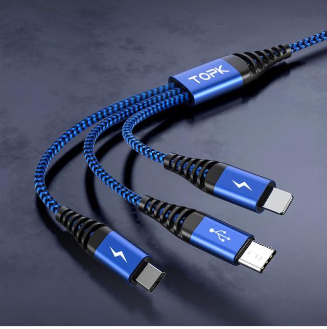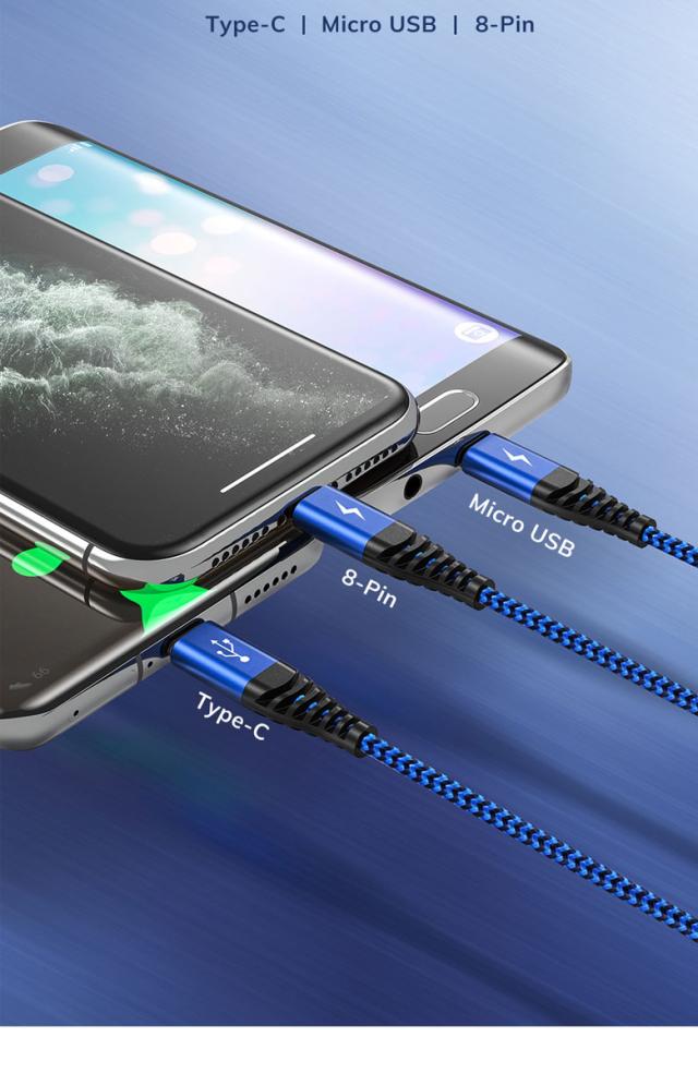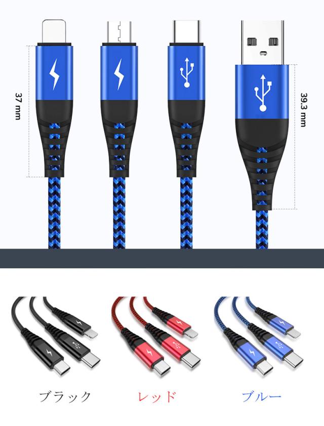 3in1 充電器ケーブル USBケーブル iPhoneケーブル Type-cケーブル Microケーブル 強度アップ 急速充電 ケーブル micro usb 1m Type-C Android 充電ケーブル