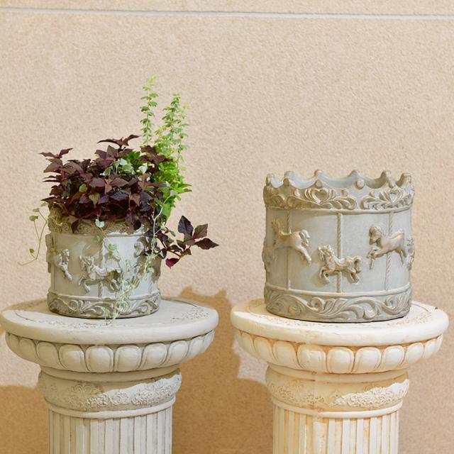 アンティークなオブジェとしても魅力的なメリーゴーランドのプランター。