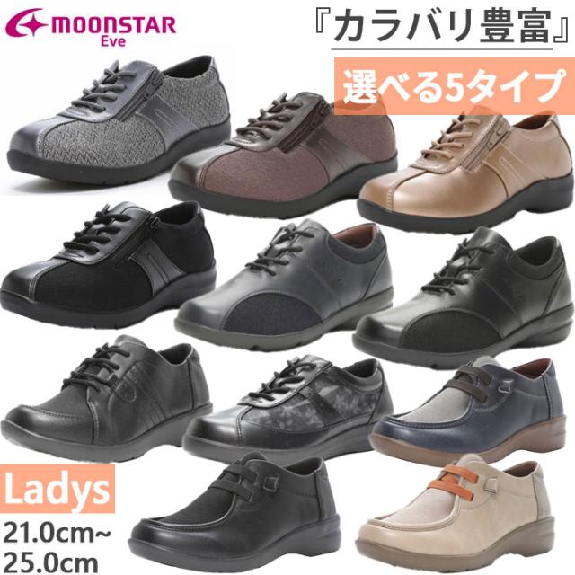 選べる5タイプ ムーンスター レディース イブ イヴ EVE コンフォートシューズ ウォーキングシューズ 旅行 散歩 ブラック 黒 グレー 送料無料 MoonStar