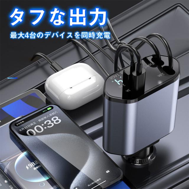 即納!シガーソケット カーチャージャー 充電器 車載 急速充電 タイプC 4ポート type-Cポート カーチャージャー ライトニングポ