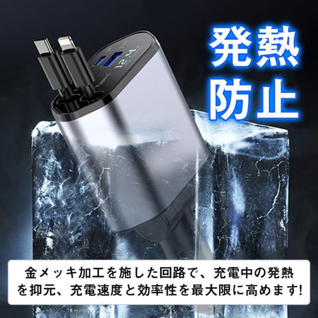 スマホ iPhone iphone 充電 車 おすすめ ケーブル 小型 ポート 増設 typeC 3in1 急速 カーグッズ 車用品 車載 カーアクセサリー 人気商品 人気 かっこいい