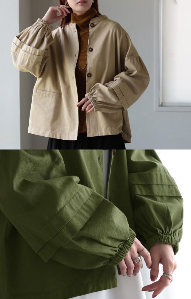 袖にタックがあり、ぽわんとしたシルエットのブルゾンです。