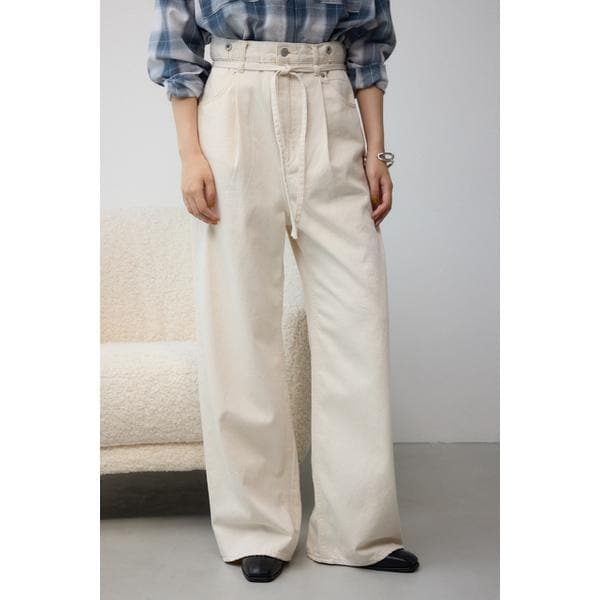 2024 Autumn&Winter item ■商品(デザイン)ポイント:華奢な雰囲気のデニムの共ベルトとサスが付いたデニムワイドパンツ。 ■商品ディティール: ゆったりとしたトレンドのワイドレッグシルエット。サスペンダーは取り外し可能。サスペンダーを垂らしたり、外して共ベルトで締めたりと様々な着こなしをお楽しみいただけます。程よい肉感と柔らかい風合いも魅力です。■スタイリング:Tシャツやタンクなどをインにしたカジュアルな着こなしはもちろん、シャツやブラウスなどキレイ目なトップスを合わせたスタイリングもおすすめ。合わせるトップス次第で雰囲気をガラっと変えられます。■素 材:10.5ozインディゴデニム/ ホワイトデニム■透け感:なし■光沢感:なし■伸縮性:なし■裏 地:なし