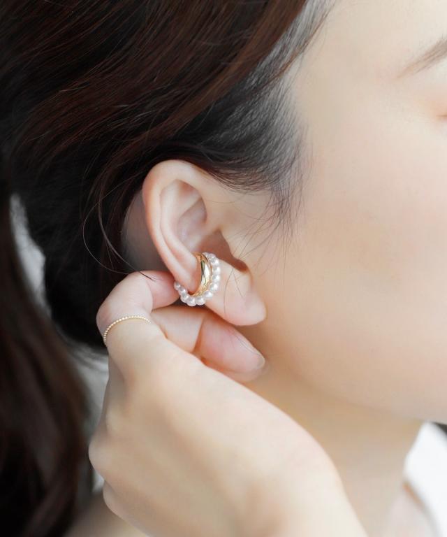パールとメタルが艶めき、上品な横顔に仕上げるイヤーカフ。