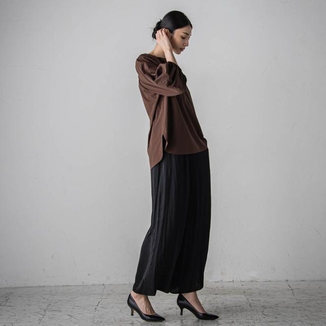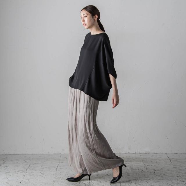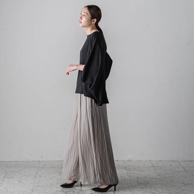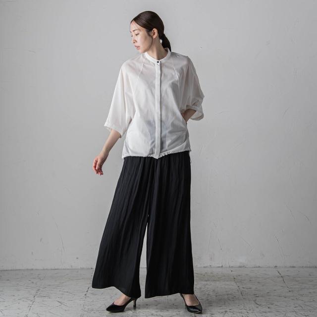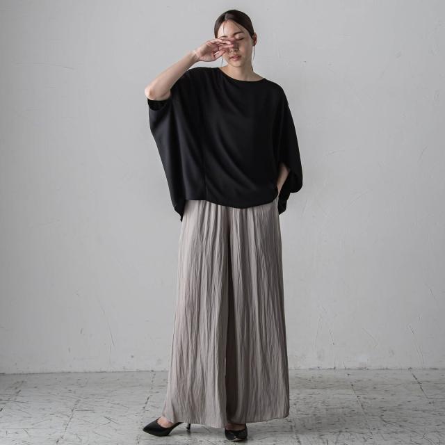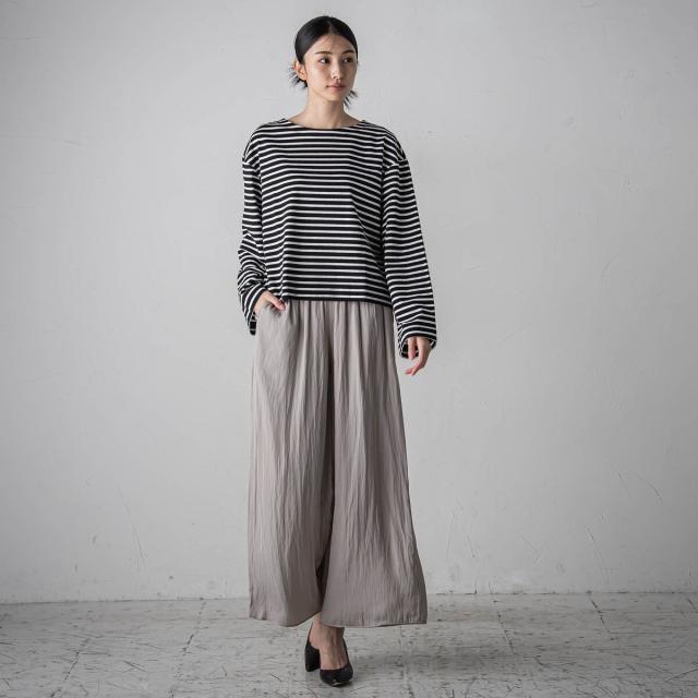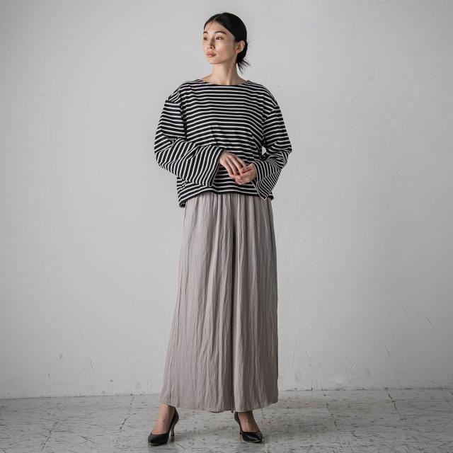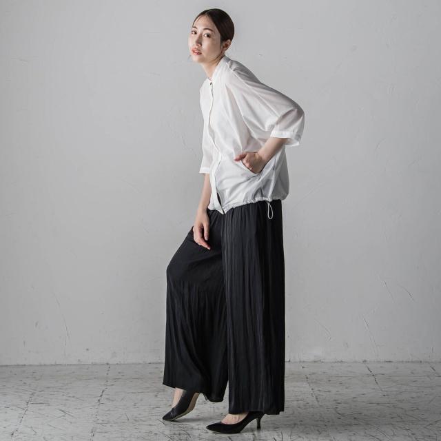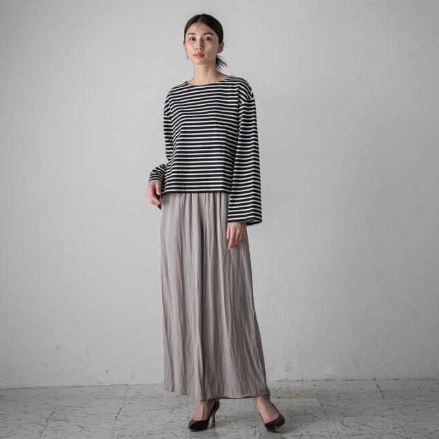 プリーツ見えする細やかなギャザーは、ラフ感と品の良さが両立する大人カジュアルを印象付けます。