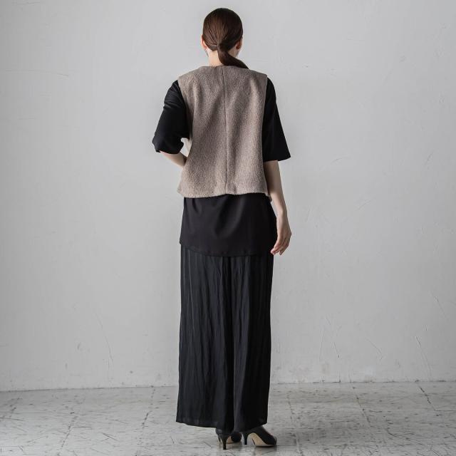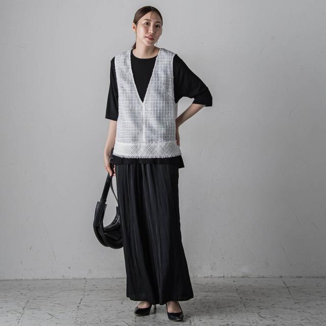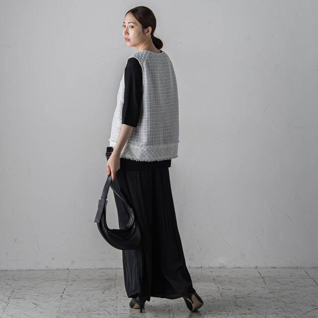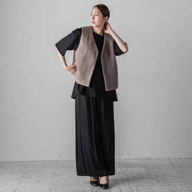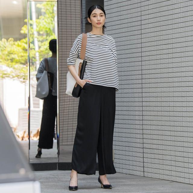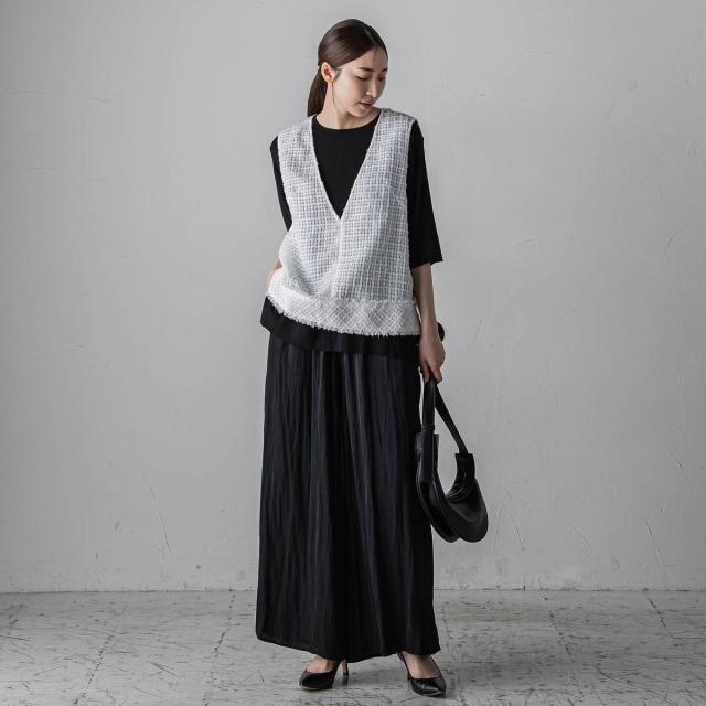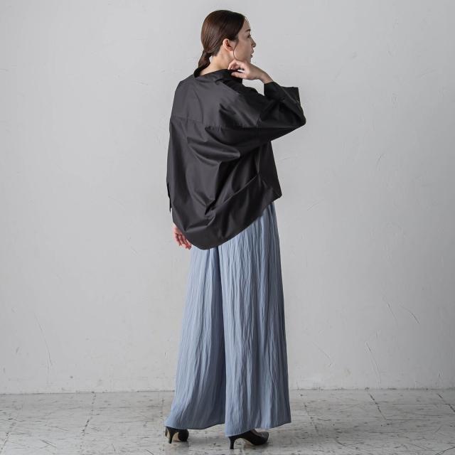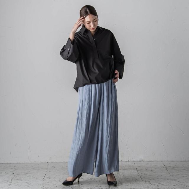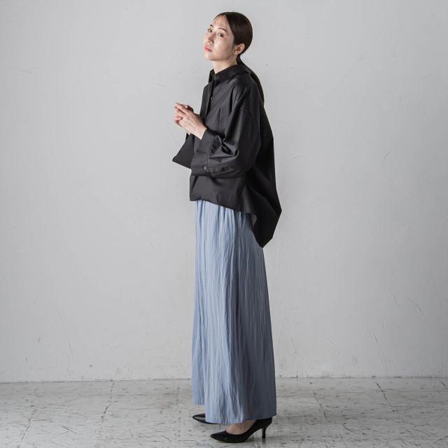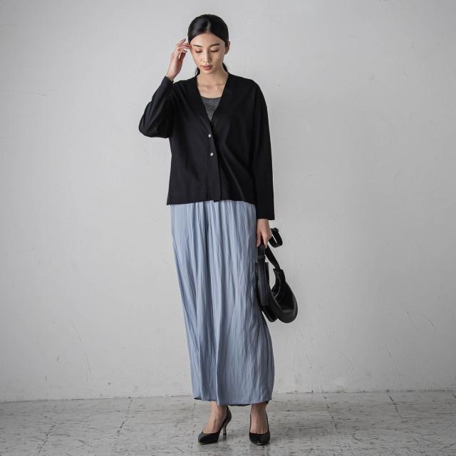 プリーツ見えする細やかなギャザーは、ラフ感と品の良さが両立する大人カジュアルを印象付けます。