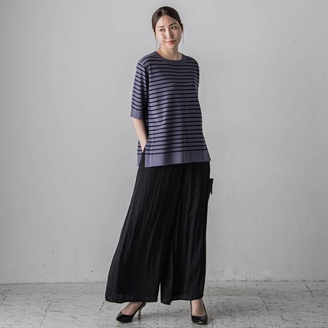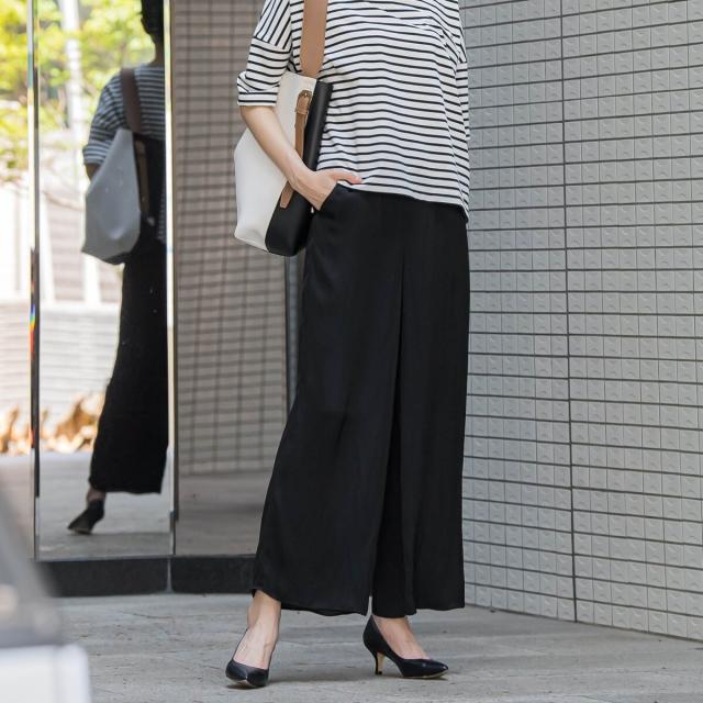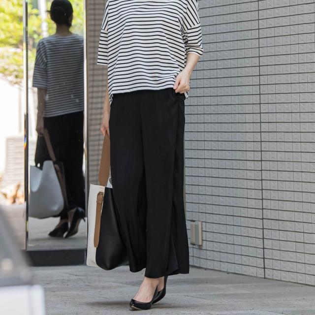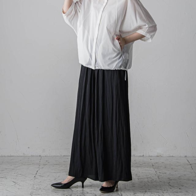 ウェストはオールゴムのラクチン仕様で、軽やかな薄手素材を使用しているので、長いシーズンお楽しみいただけます。