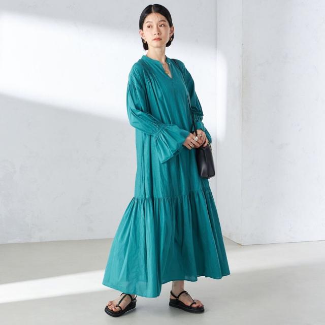 〈手洗い可能〉コットン シルク ローン ティアード ワンピース