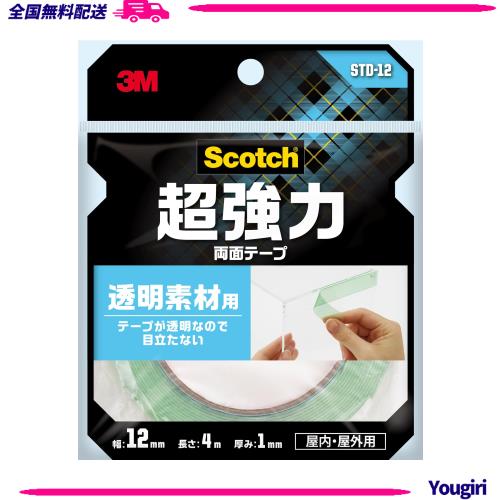 3M 両面テープ 超強力 透明 素材用 幅12mm 長さ4m スコッチ STD-12 セミロング