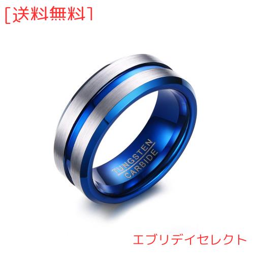 [Rockyu] 人気 ブランド タングステン指輪 メンズ シルバー 青色 ヘアライン おしゃれ リング 22号 耐久 指輪物語 結婚指輪 婚約指輪 上