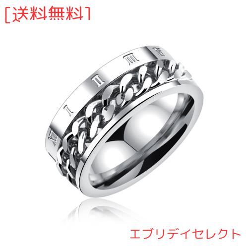 [Rockyu] ブランド 指輪 メンズ シルバー おしゃれ ステンレス 喜平チェーン 回転 ロマ数字 刻印 シルバー リング 15号 ニューヨークスタ