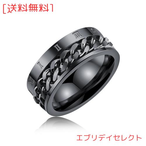 [Rockyu] ブランド リングメンズ ブラック ステンレス 回転 チェーン 回る指輪 緊張感やストレス解消 ロマ数字刻印 黒 指輪 14号 ニュー