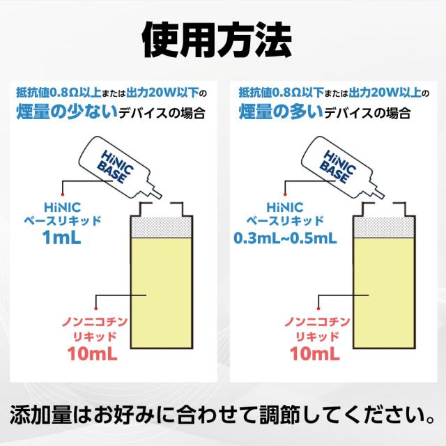 「リキッド10ml」に対して「HiNIC ベース リキッド 0.3〜0.5ml」