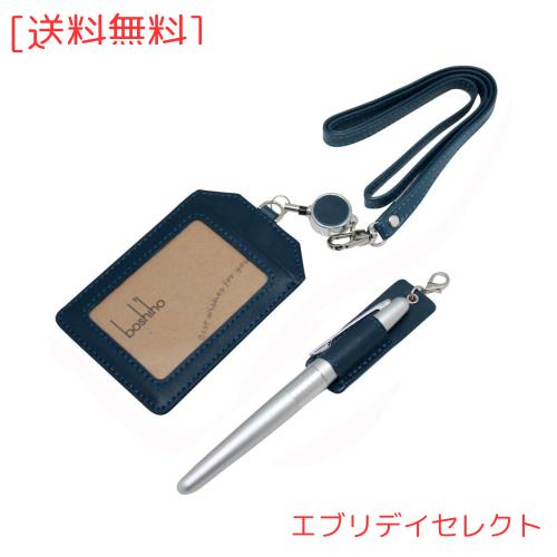 Boshiho IDカードホルダー 本革 カードケース リール付き 縦 首掛け 両面 ネームホルダー 定期入れ 社員証入れ 3枚 idカード収納 首掛け