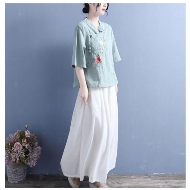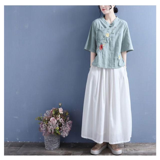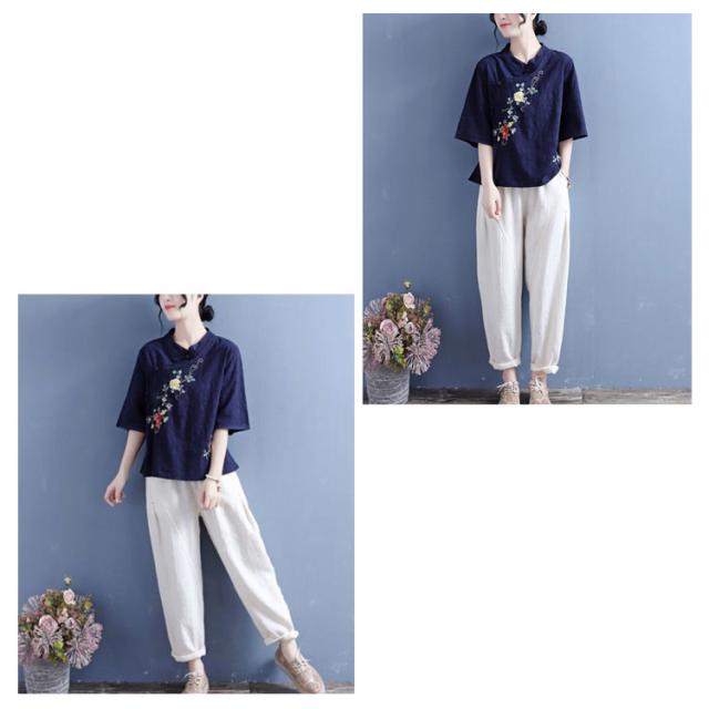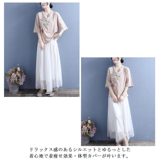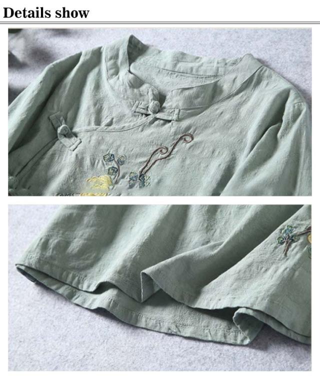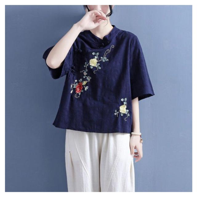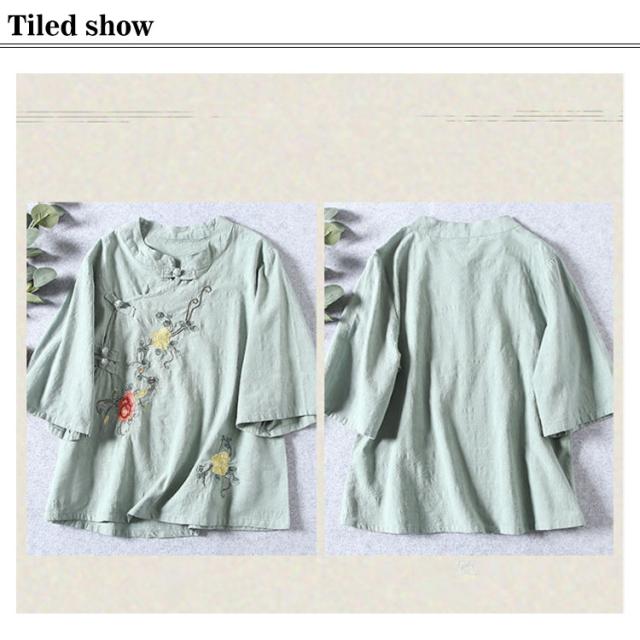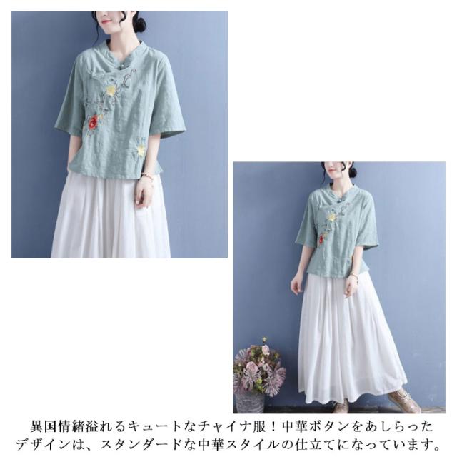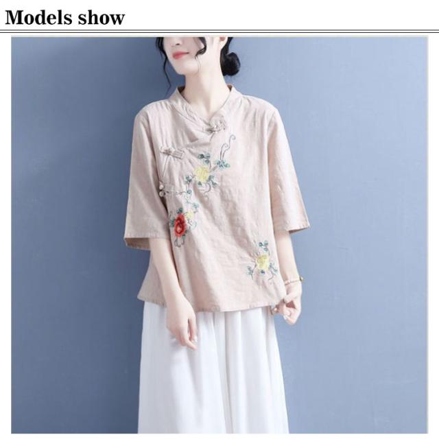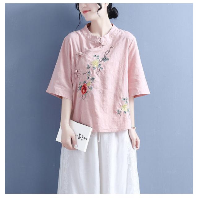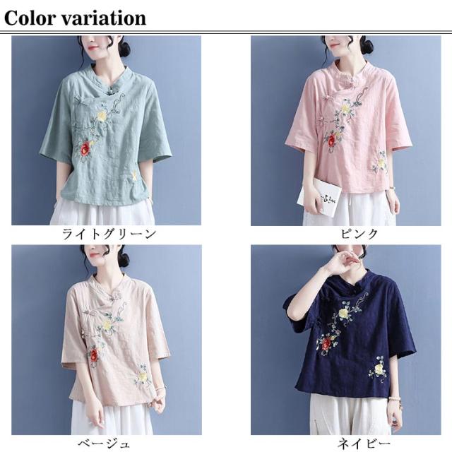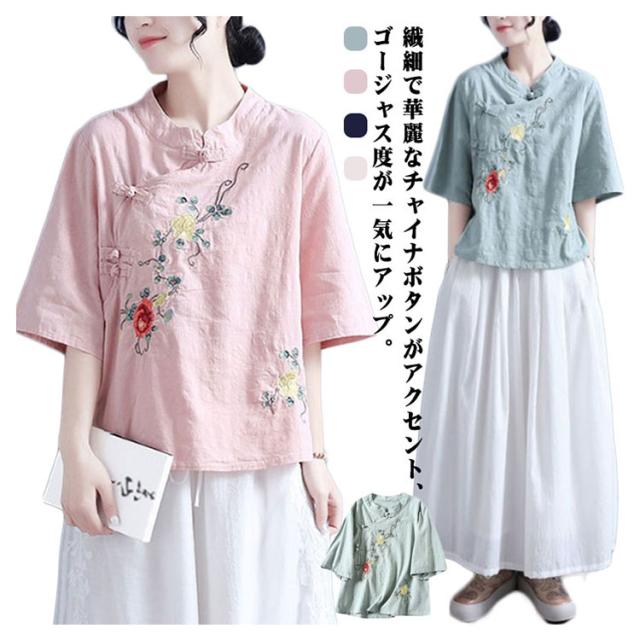 ブラウス Tシャツ チャイナカラー レディース 無地 半袖ブラウス チャイナ風 リネン 斜めボタン 七分袖 綿麻Tシャツ 綿 麻 麻生地 中国風 刺繍 チャイナ風 リネンブラウス 中華 リネン混 チャイナボタン トップス 春夏 着痩せ カジュアル 通勤 オシャレ 夏 送料無料