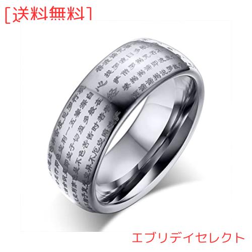 【Rockyu 指輪】タングステン リング シルバー 銀色タングステン指輪 23号 幅:8mm 超硬いタングステン比重:金とほぼ同じ、硬度:ダイヤモンドに匹敵、タングステンは耐久性に優れ、傷がつきにくいため、いつまでもその高度な輝きを失いません。【般若波羅蜜多心経刻印】大人の男性にもピッタリのさりげなく男らしさを与えてくれる魅力的なお守りのメンズ指輪です。