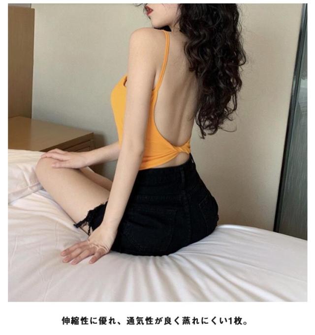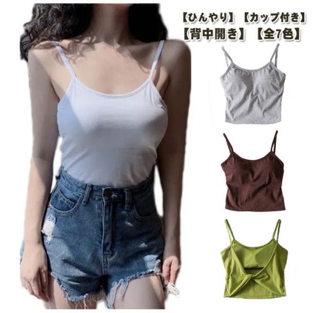 ブラトップ 見せブラ 背中見せ ブラ ルームウェア ヨガウェア キャミソール 接触冷感 トップス バックオープン セクシー カップ付き レディース ブラトップ ノンワイヤー キャミ 下着 インナー ストレッチ 背中クロスブラ ショート丈 無地 夏 春夏