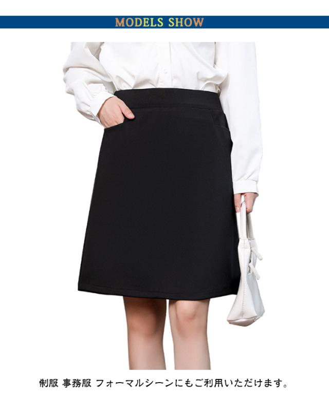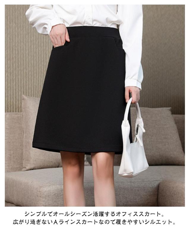夏 フォーマルスカート ハイウエスト スカート 事務服 通勤 膝丈 着?せ ボトム レディース 単品 制服 洗える お手入れ簡単 事務員 美脚 オフィス スカート ポケット 体型カバー Aライン ブラック OL プレゼント 大きいサイズ 大人 女性 ギフト ビジネス